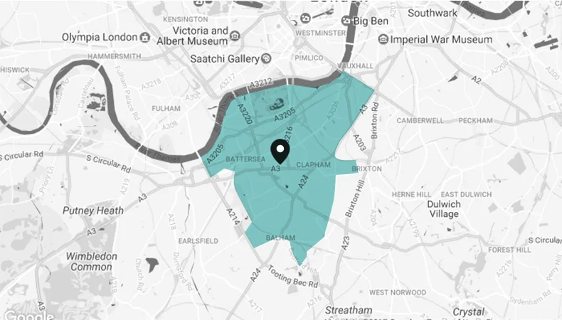 We deliver most cakes for a standard fee to South West London (shown in blue). For full delivery information regarding prices and Bespoke cakes requiring assembly please see our FAQ.